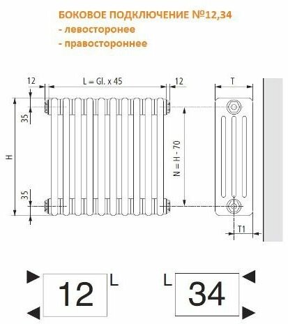 Радиатор секционный Arbonia 3050/12 боковое подключение (без накладок) № 12 3/4" RAL 9016 Белый