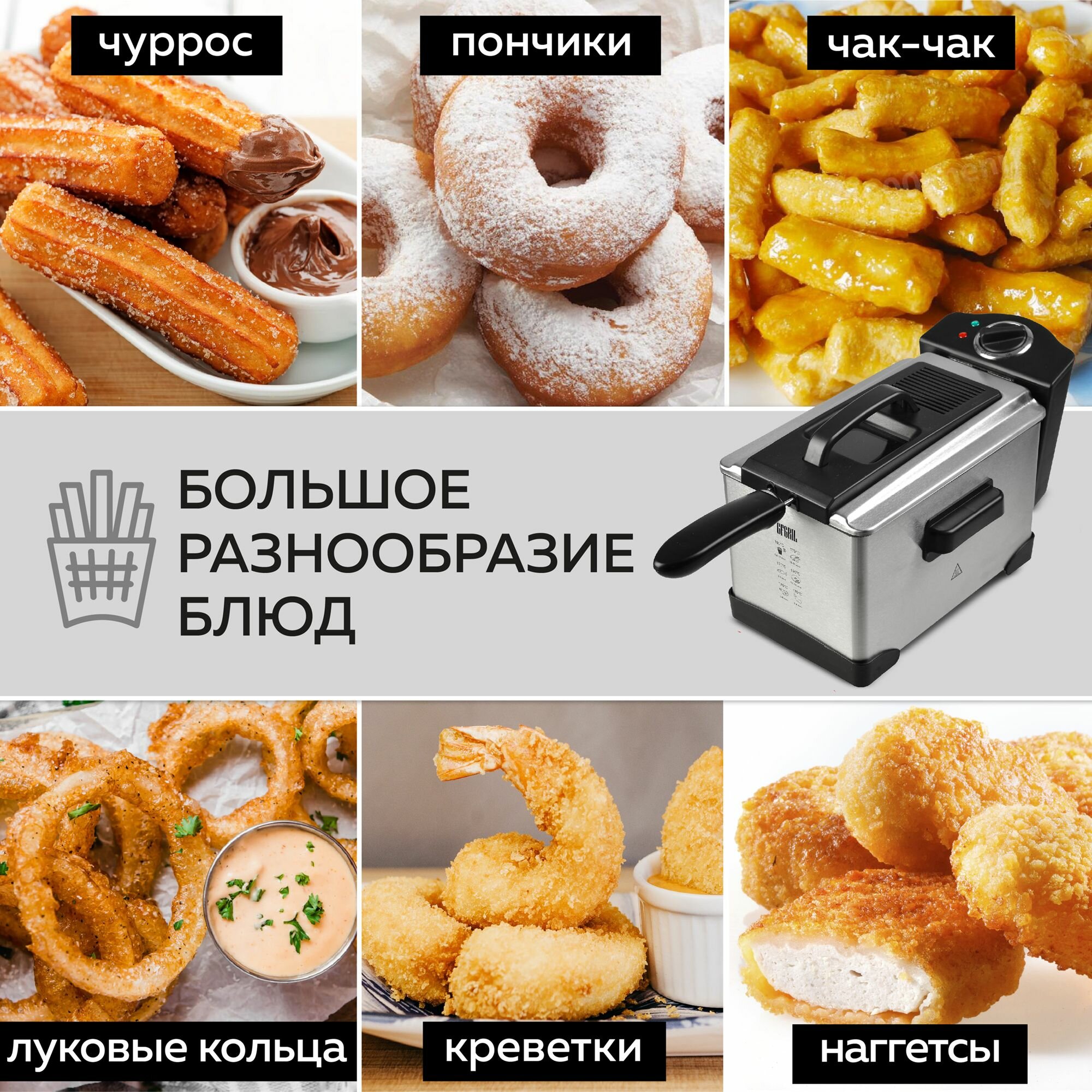 GFGRIL Электрическая фритюрница GFF-M2000, съемная чаша 2,5 л, 1 400 Вт