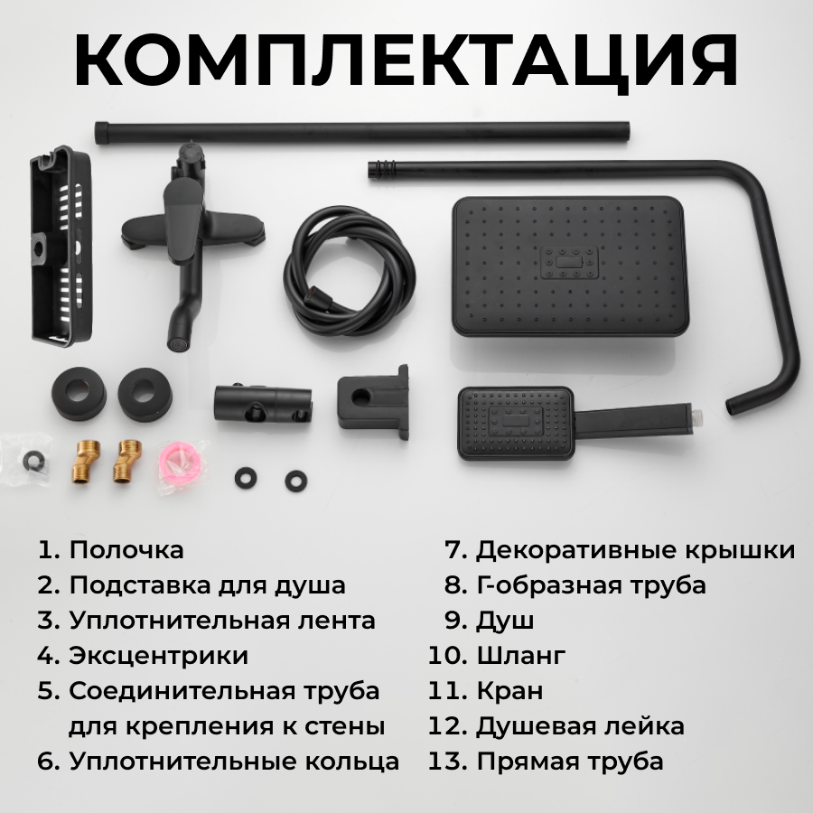 Paffoni Душевая система с тропическим душем и смесителем, гарнитур комплект черный душевые системы в Курчатов