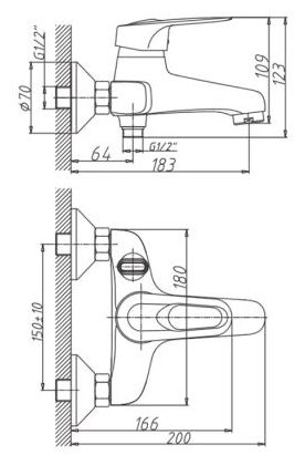 Смеситель для ванны Haiba HB3204 с коротким изливом, хром