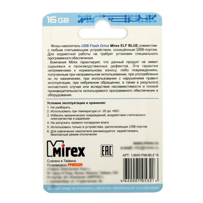 Флешка Mirex Elf Blue 16 Гб usb 2.0 Flash Drive - синий