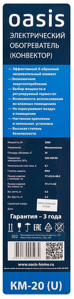 UFO Конвектор Akvilon /Oasis KM-20 D/С/U /2000Вт, напольн, мех. управл./ конвекторы в Курчатов