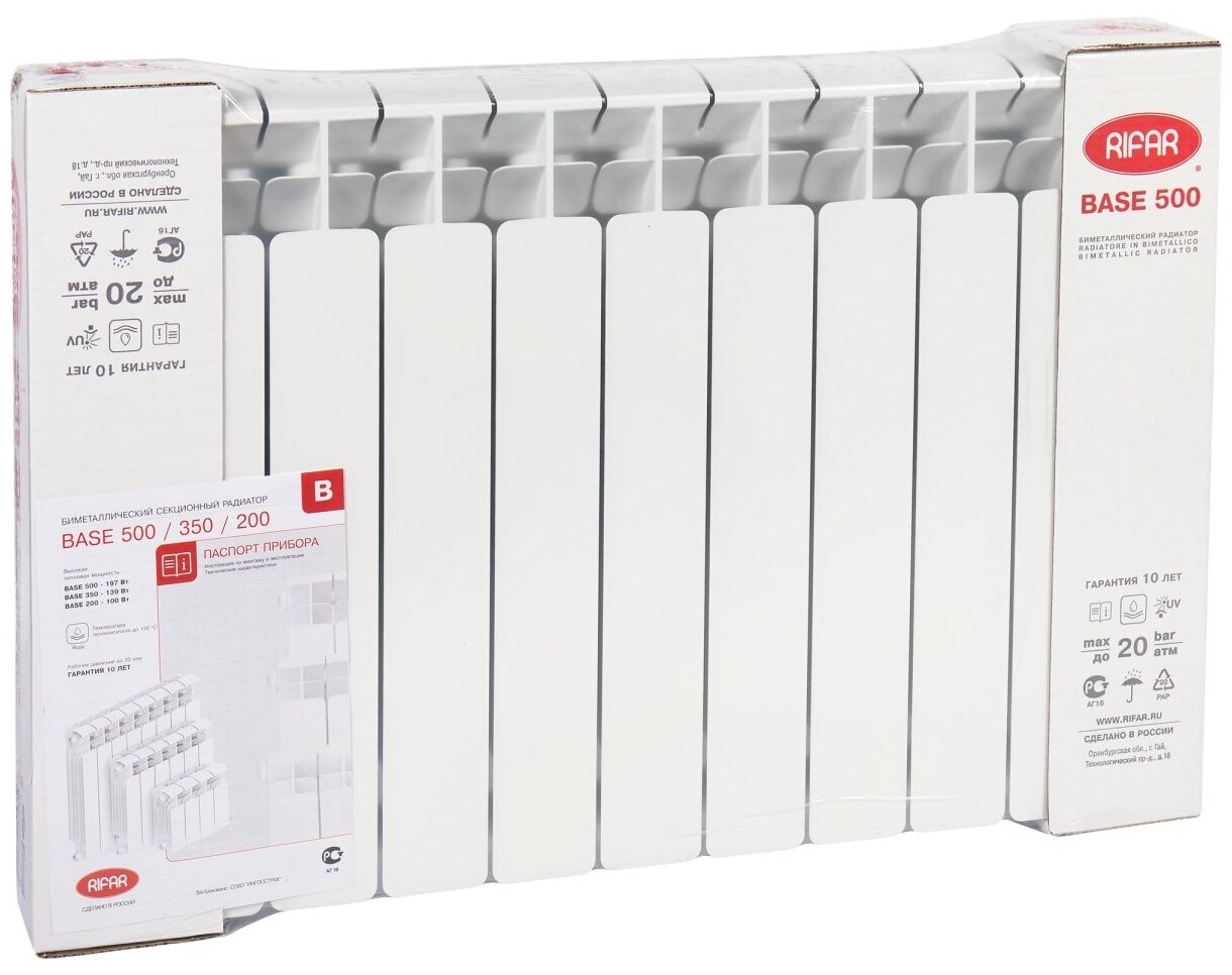 Радиатор биметаллический Rifar Base 500 10 секций, белый