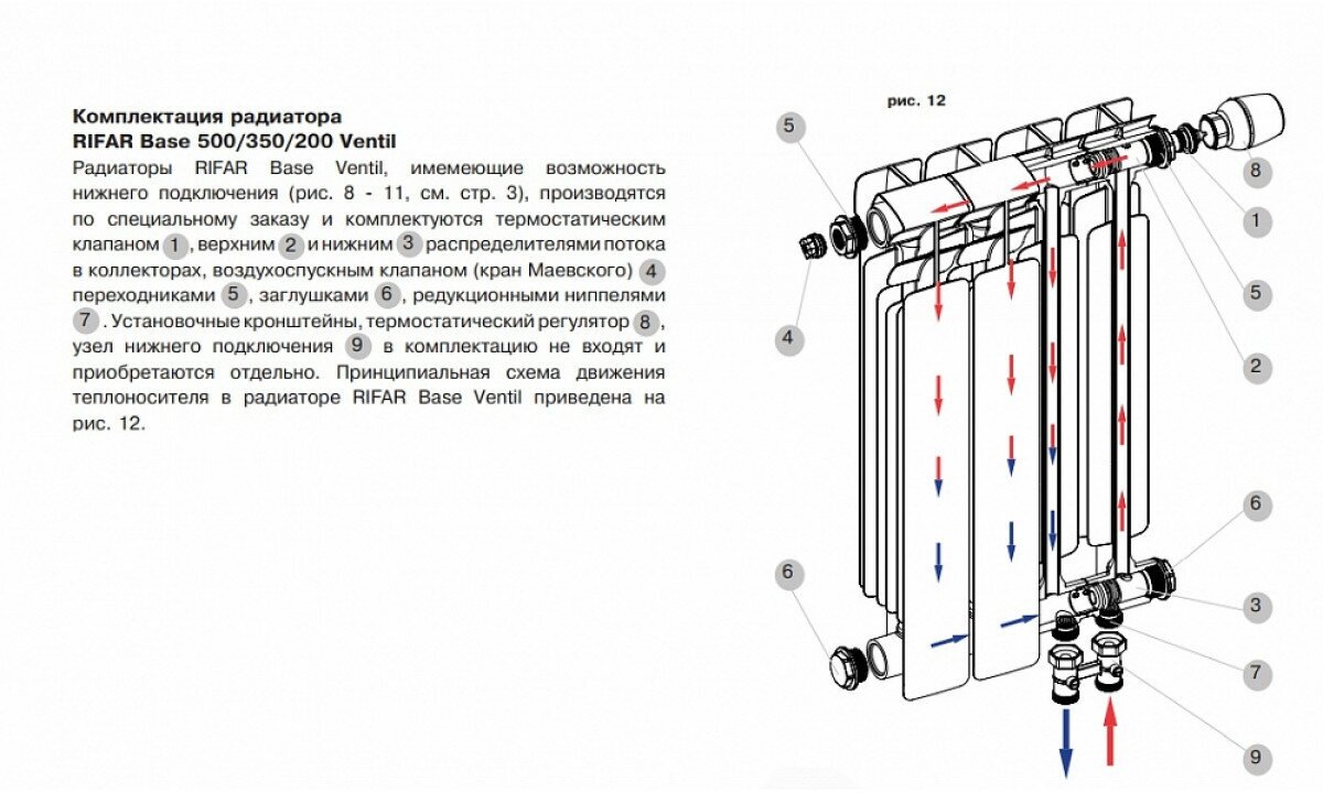 биметалические радиаторы отопления Rifar Радиатор биметаллический Rifar Base 500 12 секций