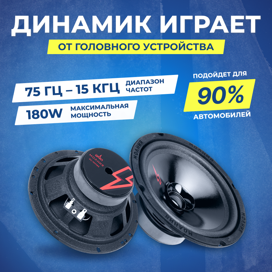 Колонки автомобильные Ural Молния АС-МЛ165 (без решетки) 180Вт 93дБ 4Ом 16.5см (6 1/2дюйм) (ком.:2ко