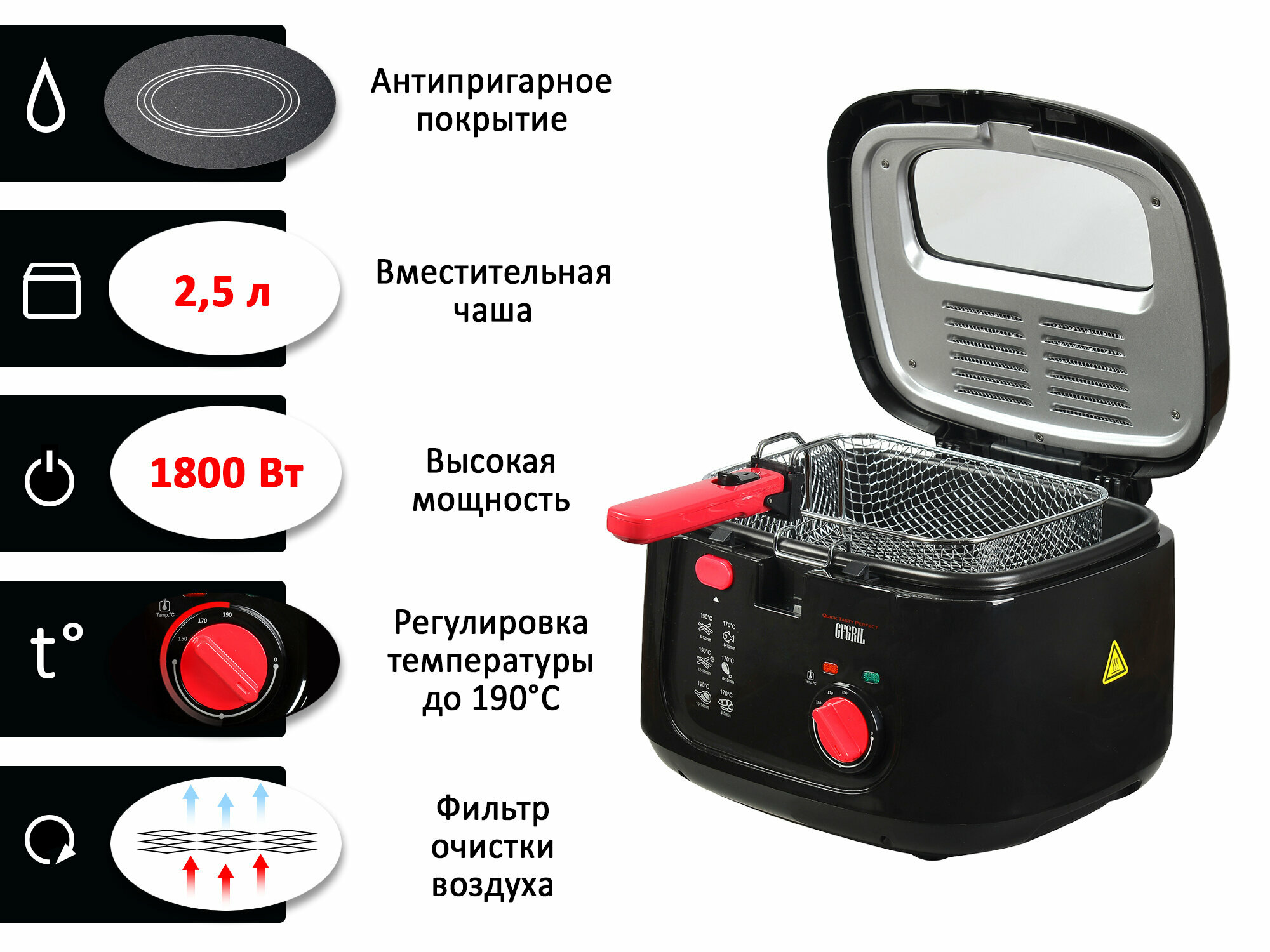 Фритюрница GFgril GFF-052BR черный/красный