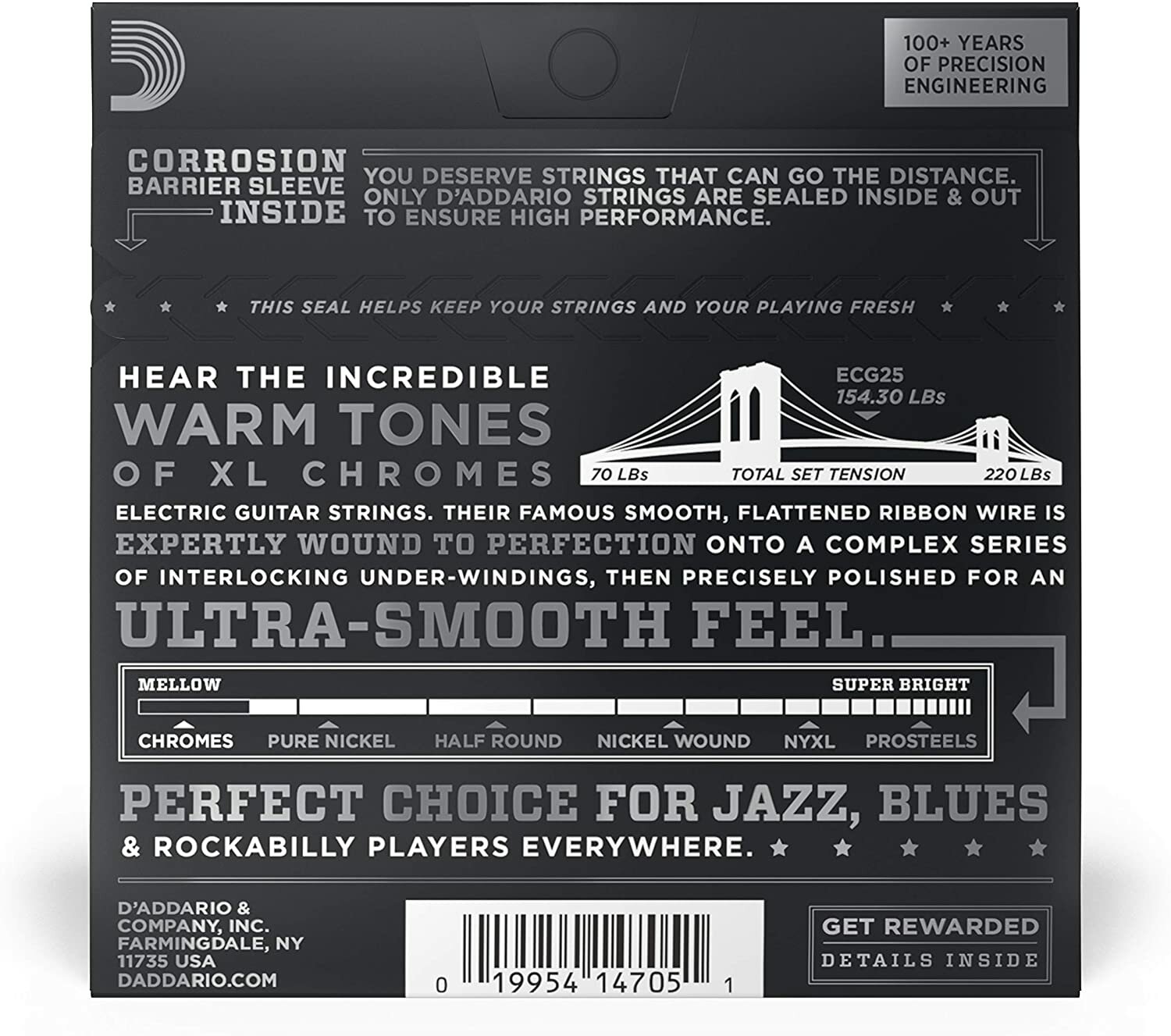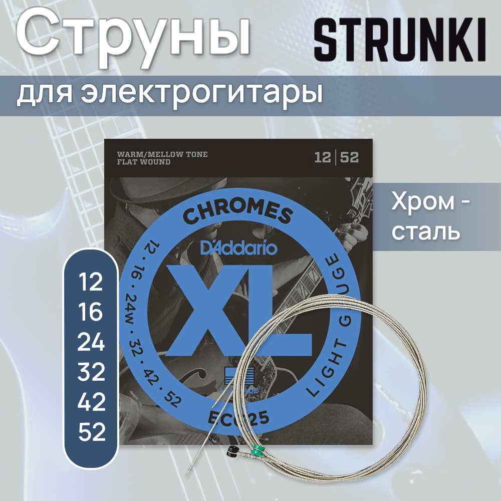 ECG25 Chromes Flat Wound Комплект струн для электрогитары, Light, 12-52, D'Addario