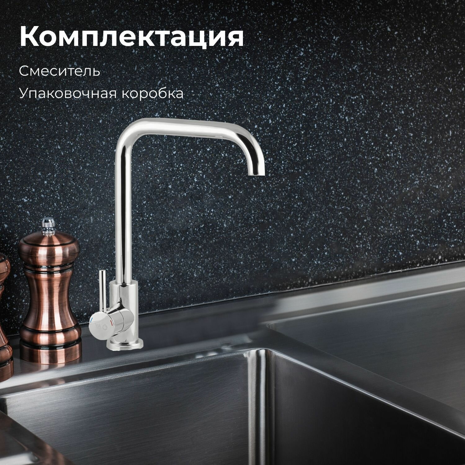 Смеситель для кухни, раковины с поворотным высоким изливом, аэратор AV Engineering (AVZAR4-B304CH-735)