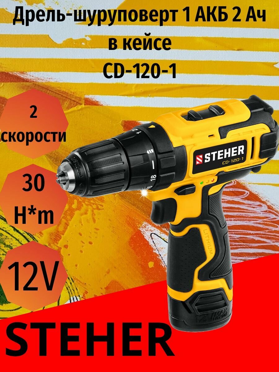 Дрель-шуруповерт STEHER 12В 1 АКБ 2Ач-1 (CD-120-1)