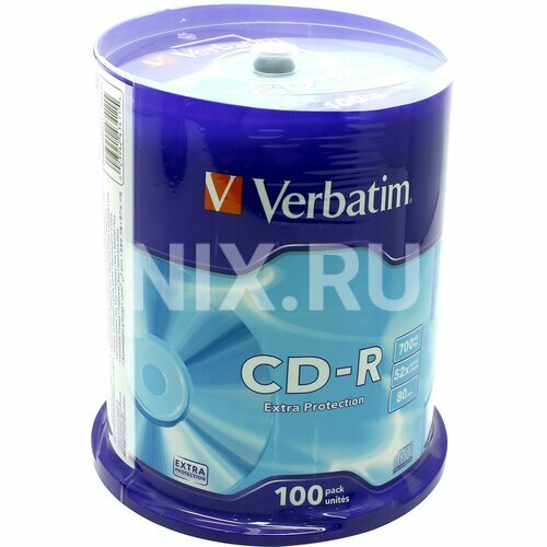 Компакт диск Verbatim CD-R, скорость записи 52x, Extra Protection, 700 мб, 100 шт (43411)