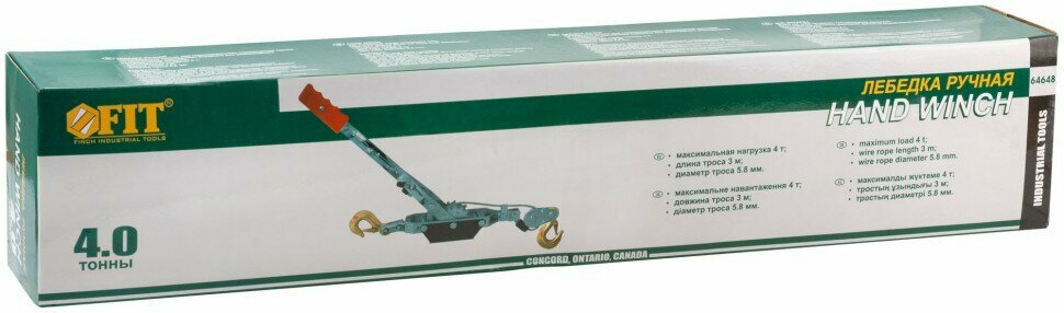Лебедка ручная усиленная FIT IT 64648, 4000 кг