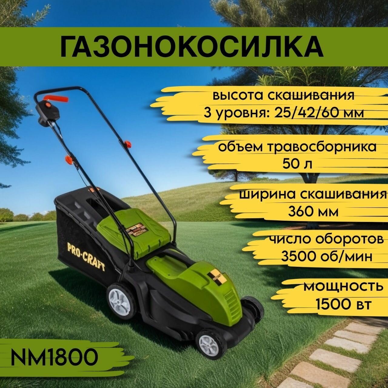 Craft Газонокосилка электрическая Procraft NM-1800, 1800 Вт газонокосилки в Курчатов