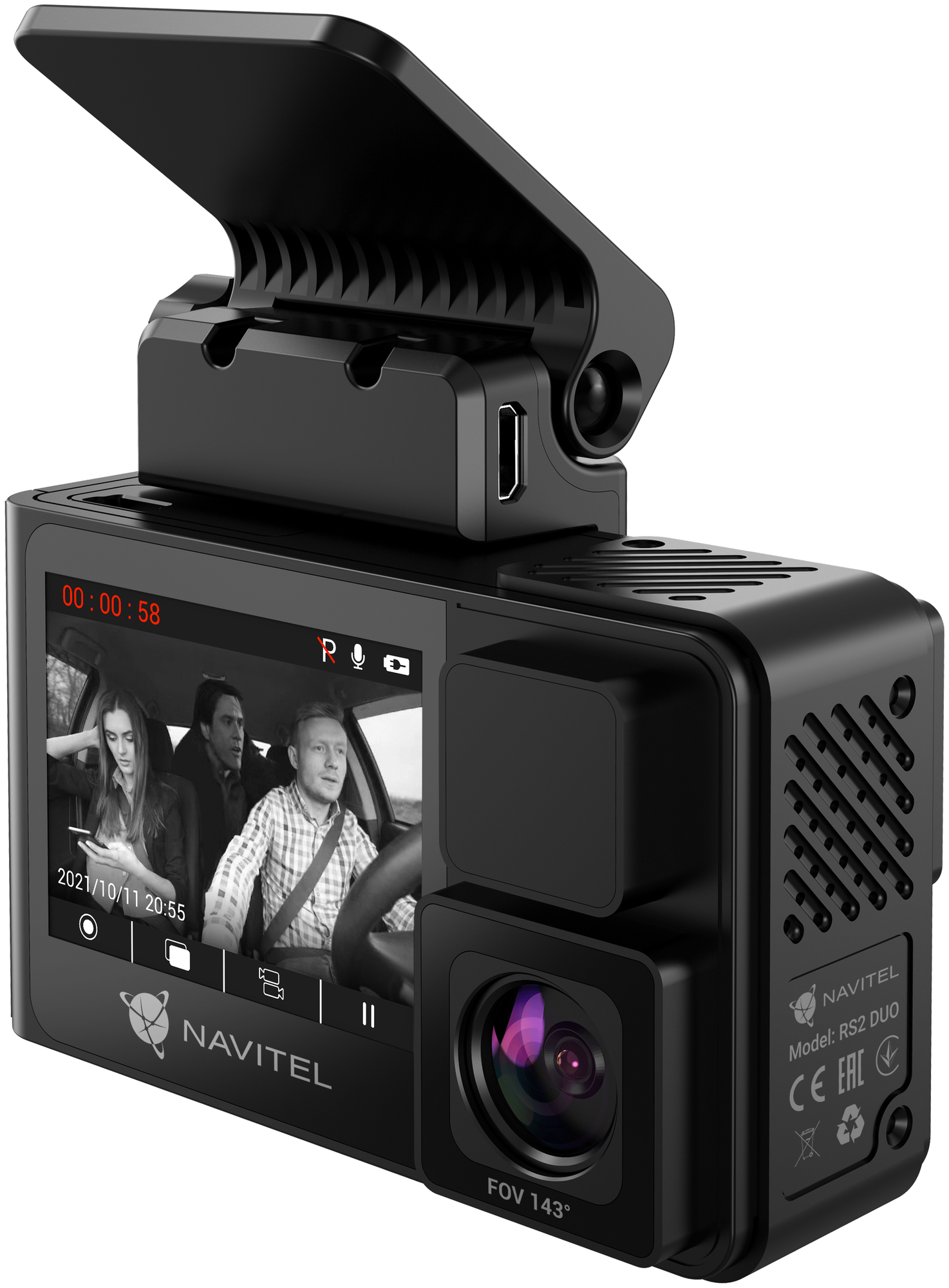 Видеорегистратор NAVITEL угол обзора 143°, 1920х1080 FullHD (30 fps), камера в салон SONY STARVIS (Night Vision) NAVITEL-RS2DUO