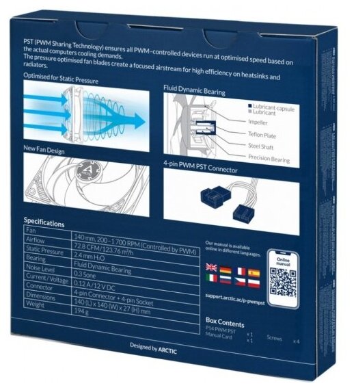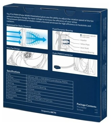 Arctic P14 PWM PST 4пин 140x140x27мм 200-1700об/мин .