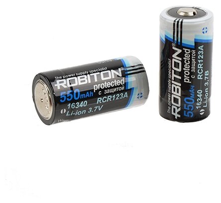Аккумулятор ROBITON Li-Ion 16340 (RCR 123A), 3.7 В, 550 мАч, с защитой BL2