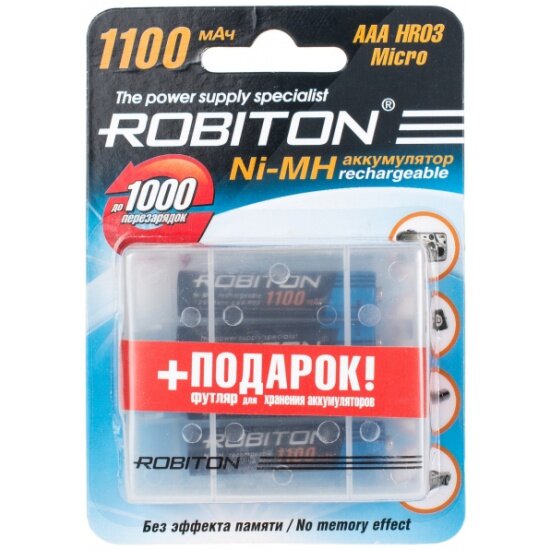 Аккумулятор Robiton AAA 1100 mAh (уп 4 шт) + футляр 4607075943278 .