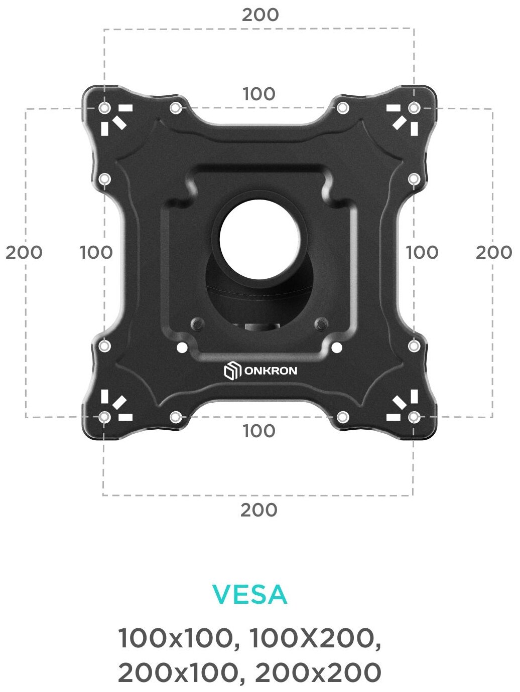 ONKRON Кронштейн настенный ONKRON M4S, 17-43, VESA 100x100/200x100/100x200/200x200, до 35 кг, черный