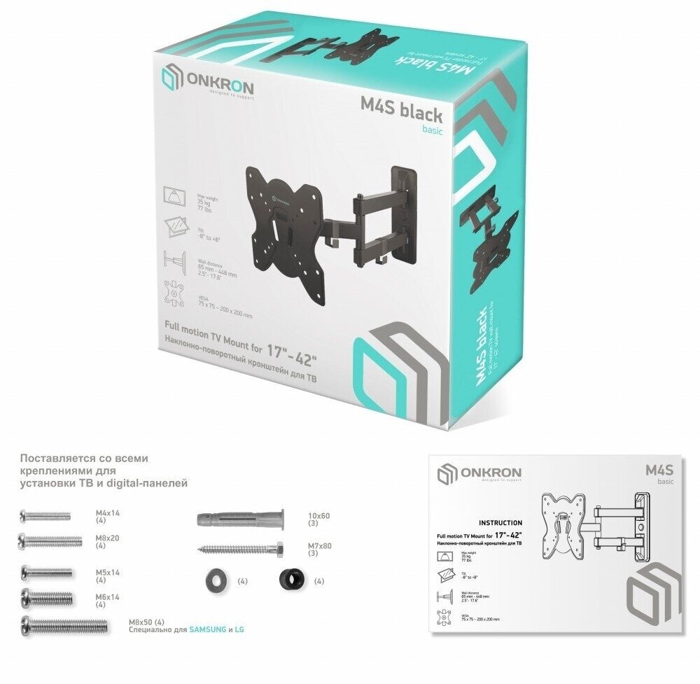 Кронштейн для ТВ Onkron M4S 17-42", черный