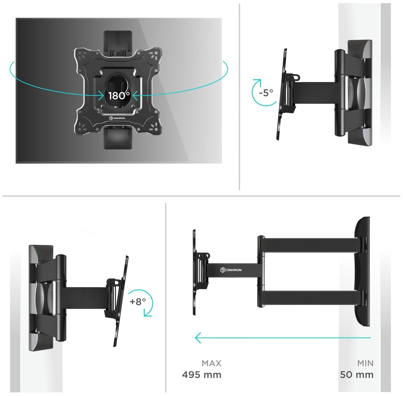 Кронштейн для телевизора ONKRON M4S, 17-43", настенный, поворот и наклон, черный