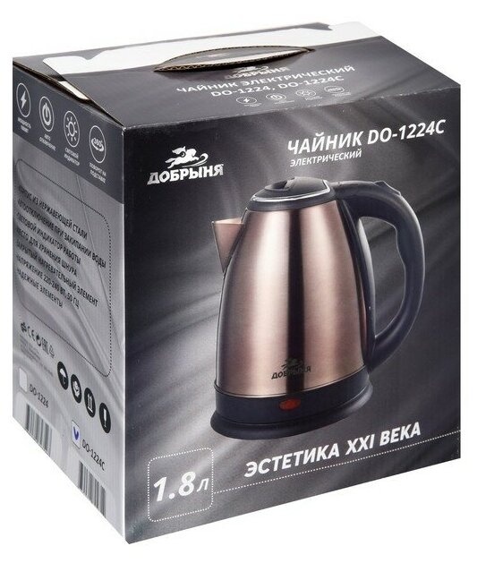 Чайник электрический "Добрыня" DO-1224C, металл, 1.8 л, 1800 Вт, коричневый