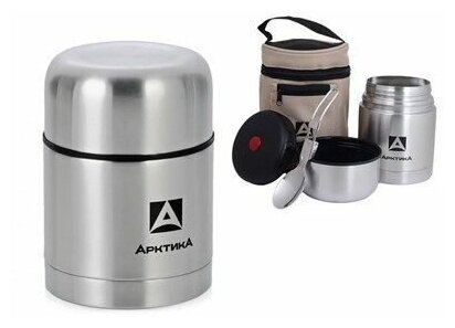 Термос для еды и супа Арктика 301-750А серебристый 0,75 литров со складной ложкой и чехлом в комплекте