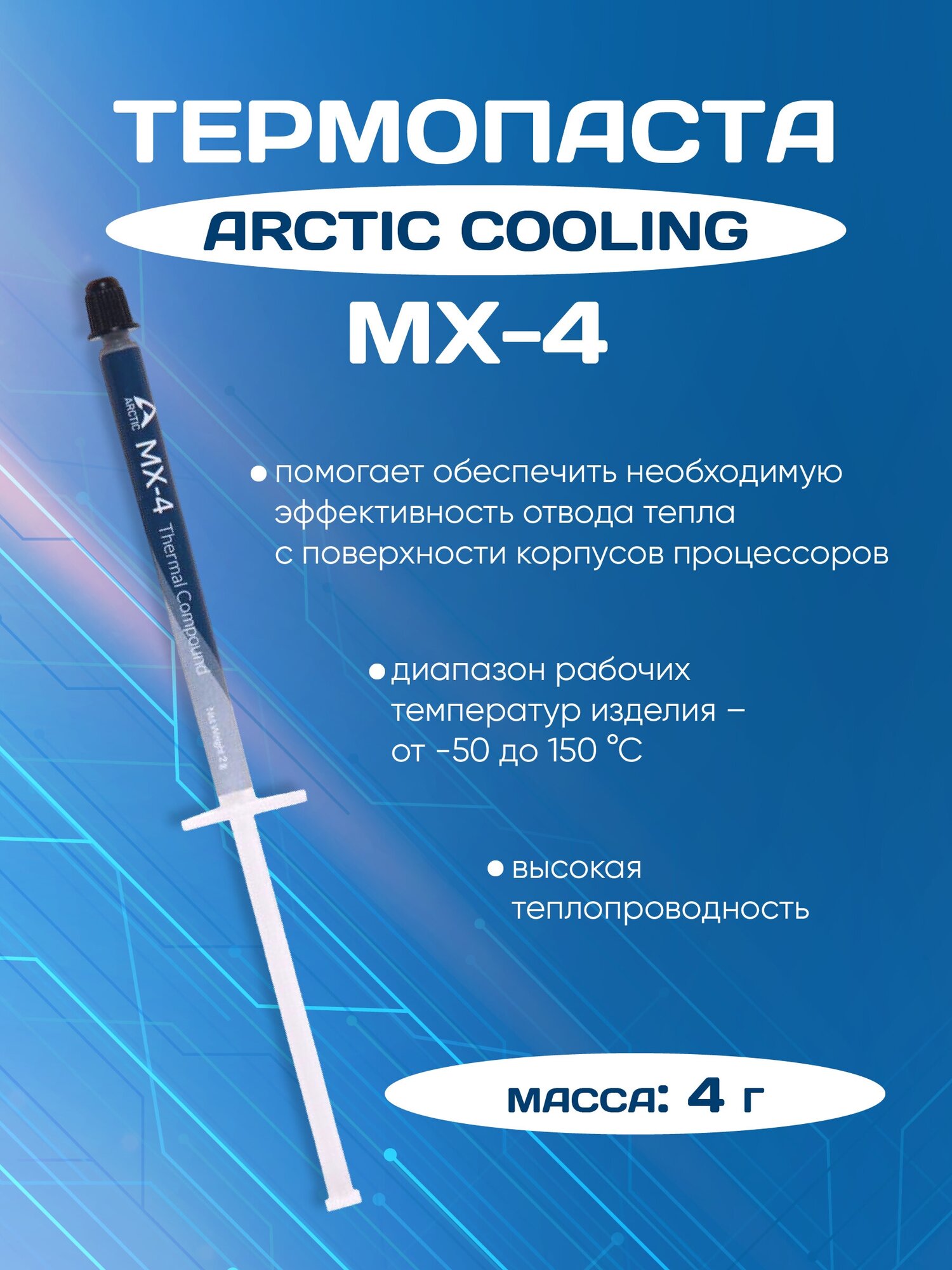 Термопаста Arctic Cooling MX-4 в шприце для видеокарт, чипов, процессоров, 8.5 Вт/мК, 4 гр