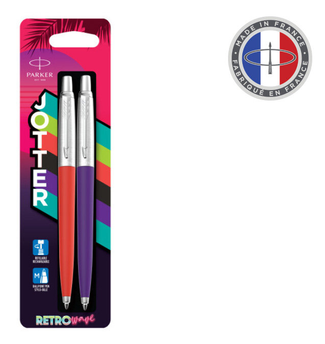 Ручка Parker Набор ручек Jotter Originals 80s Retrowave (2186314) Vermilion Red/Indigo Purple M син. черн. блистер шариковая 2шт.