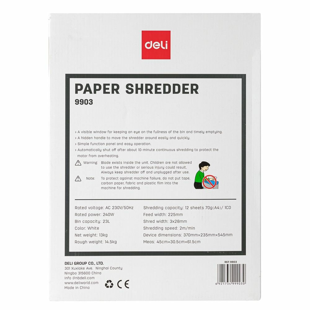 Уничтожитель бумаги Deli E9903-EU белый/черный