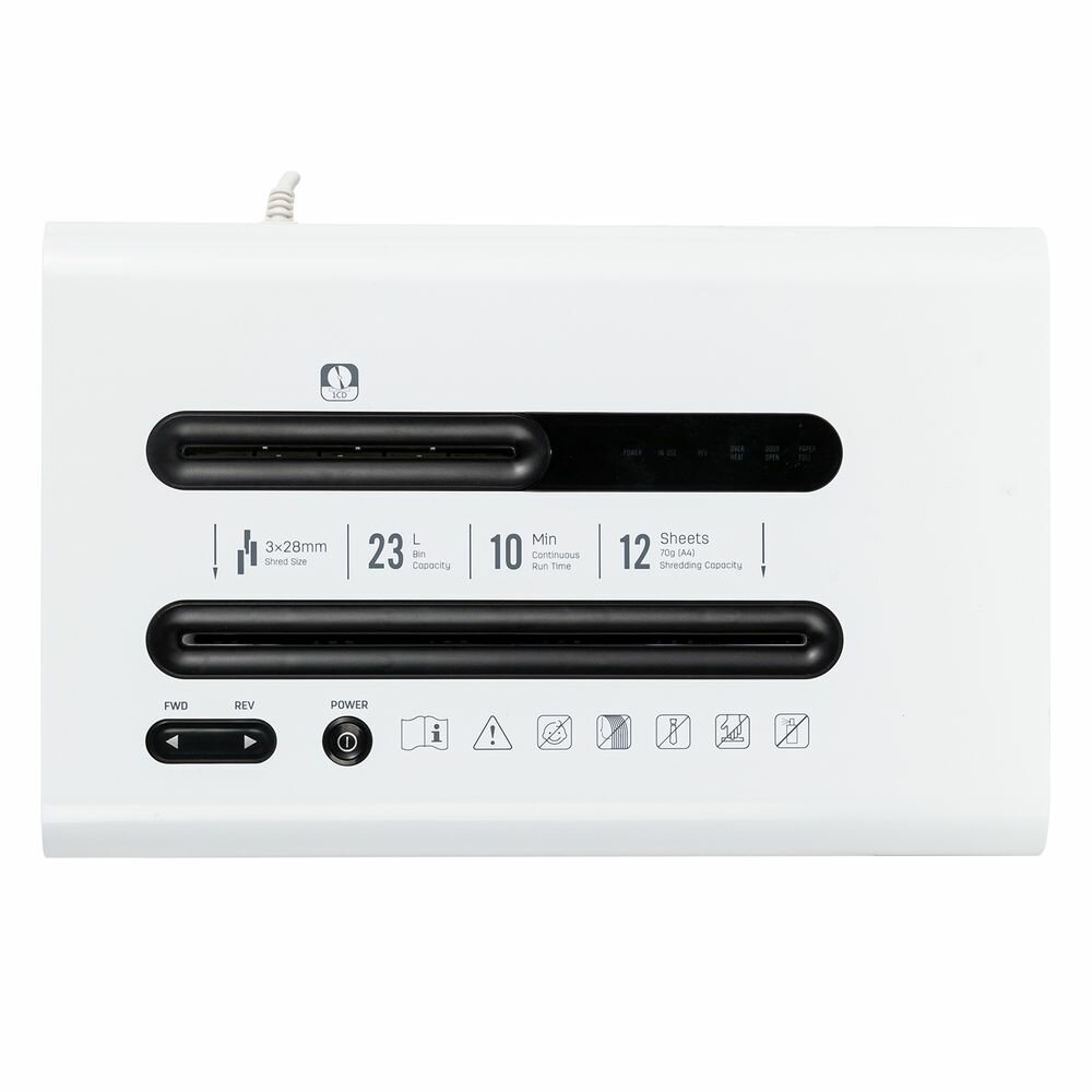 Уничтожитель документов (Шредер) Deli белый/черный (секр.P-4) фрагменты 12лист. 23лтр. скрепки скобы пл.карты CD