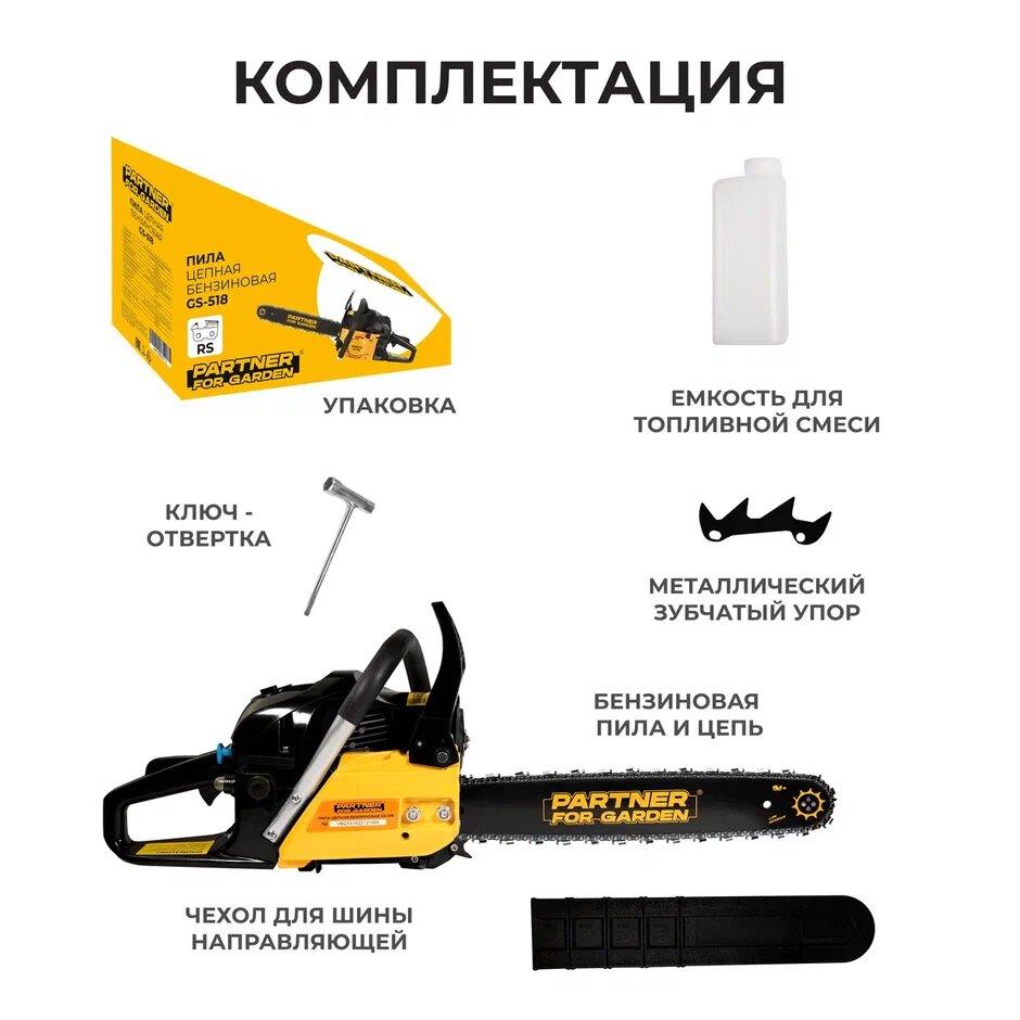 Бензопила цепная / цепная бензиновая пила Partner for Garden GS 518 Р ( 3,5 л.с, мощность 2,4 кВт, длина шины 18" - 45 см )