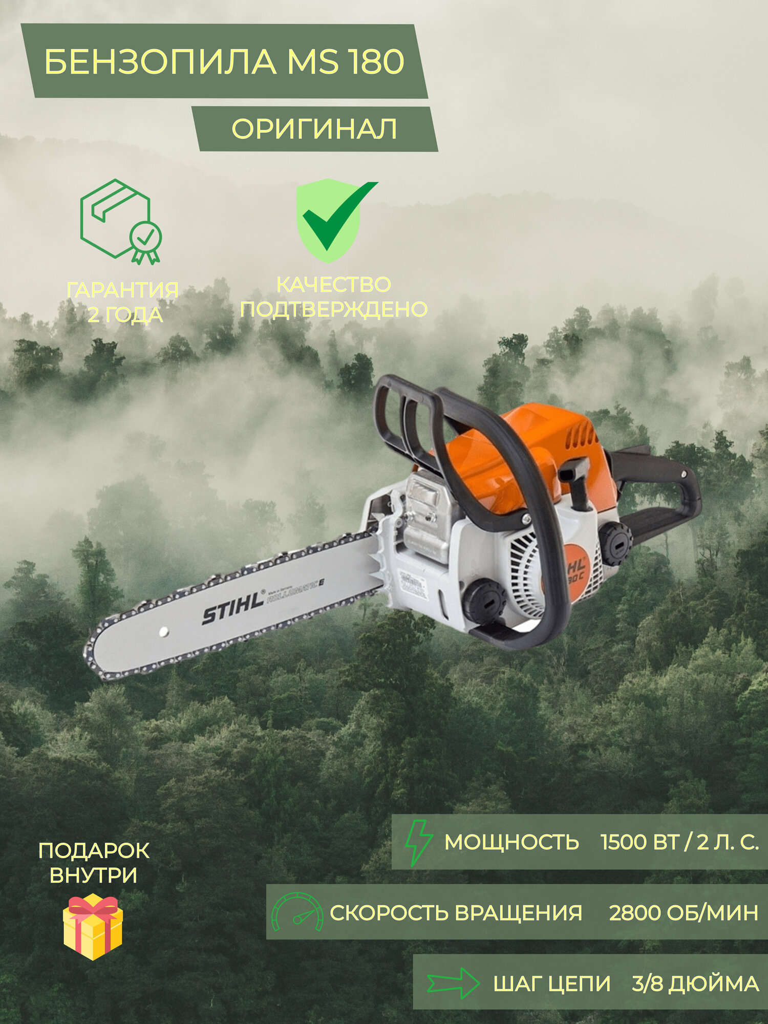 Бензопила цепная пила STIHL (Штиль) оригинал MS 180 шина R 35 см цепь PD 3 садовая пила мс техника для дачи, сада и строительства
