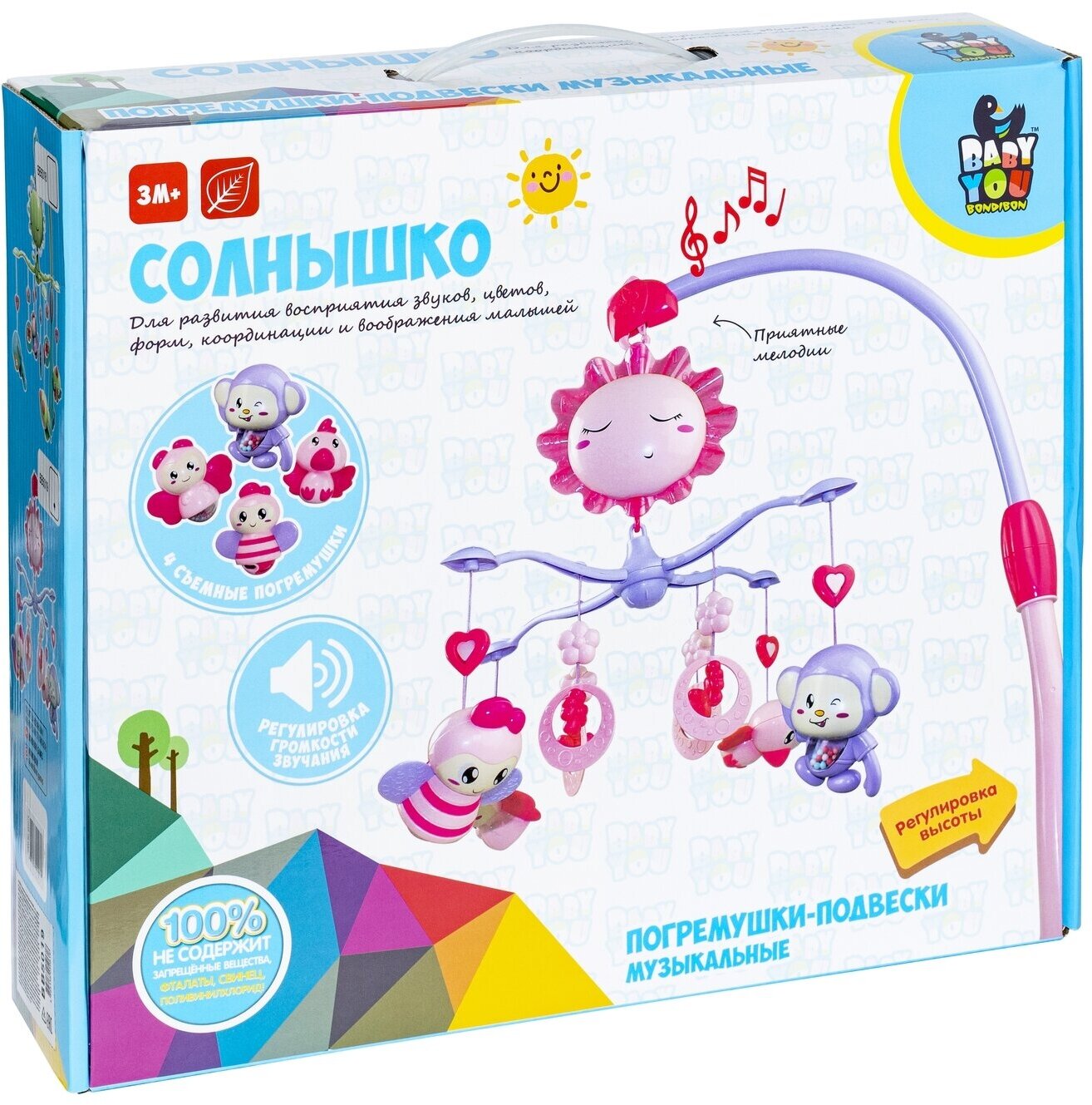 Bondibon Музыкальный мобиль BONDIBON Солнышко со съемными погремушками розового цвета серия Baby You мобиль в Курчатов