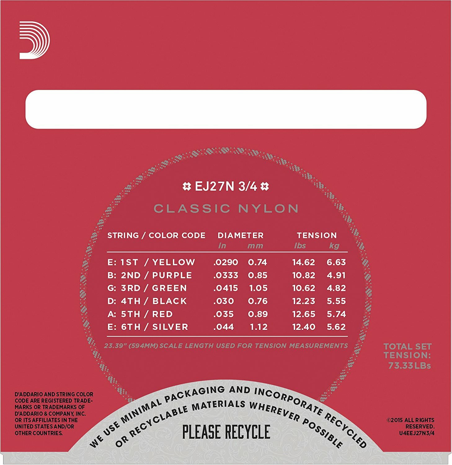 Струны для классической гитары 3/4 D'ADDARIO EJ27N-3/4