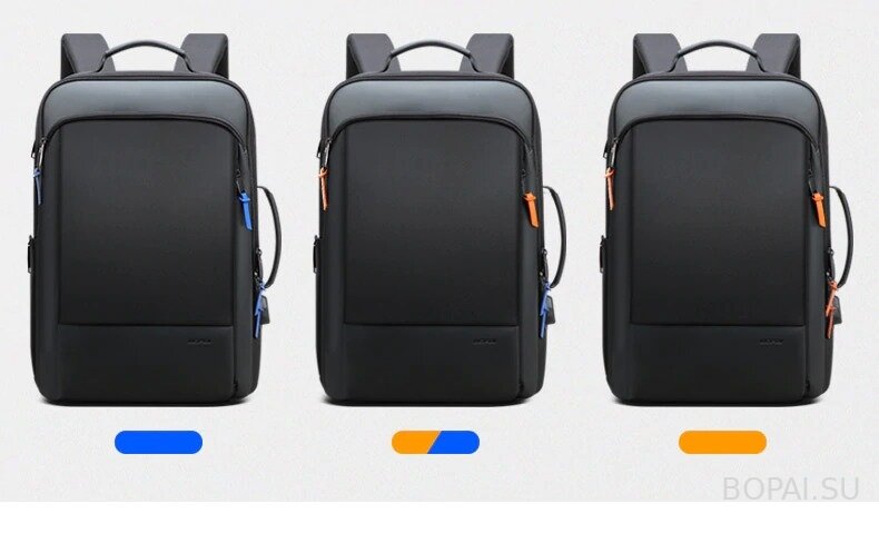 Рюкзак трансформер BOPAI черный городской портфель для работы, командировки и путешествий, для ноутбука 14"-15.6" дюймов, унисекс, 20-35 литров