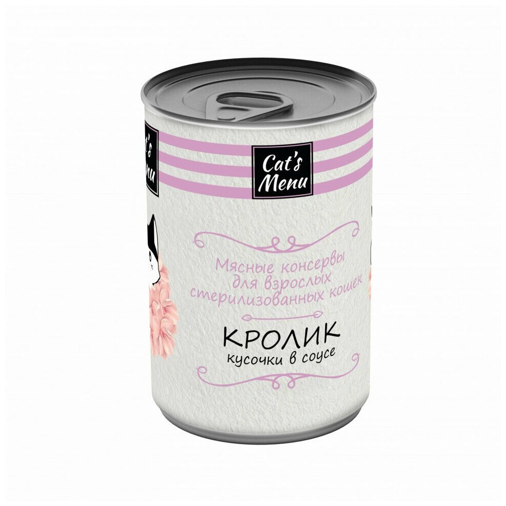 Cat's Menu Консервы для взрослых стерилизованных кошек с кроликом, кусочки в соусе, 340 г