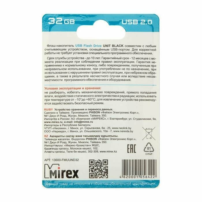 Флешка Mirex UNIT 32 ГБ, 1 шт., черный