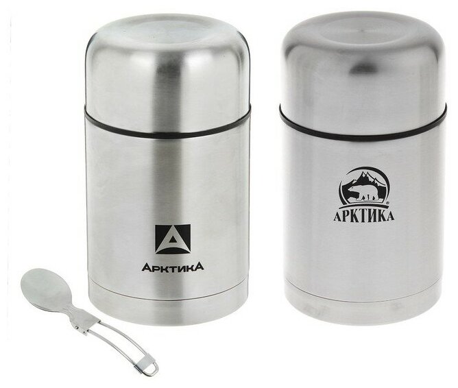 Термос для еды и супа Арктика 301-750А серебристый 0,75 литров со складной ложкой и чехлом в комплекте