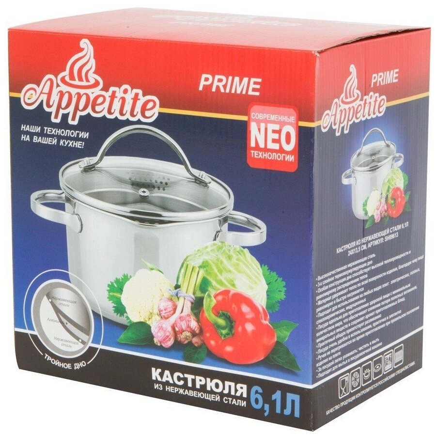Кастрюля Appetite Prime, 6.1 л, диаметр 24 см