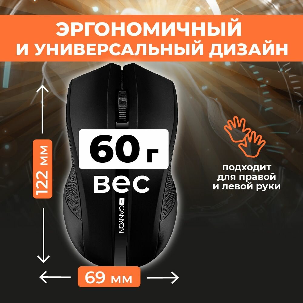 Мышь беспроводная Canyon MW-5, 1600dpi, Черный CNE-CMSW05B
