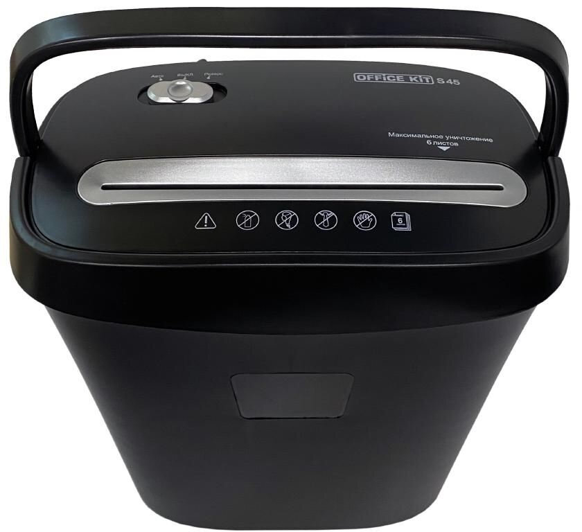 Уничтожитель документов Office Kit S45, 5 ур. секр. 2×9мм, 6 лист, 16л, скрепки, скобы, карты