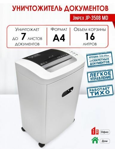 Уничтожитель документов Jinpex JP-3508MD, 2x15 мм, 7 листов, 16 л, P5
