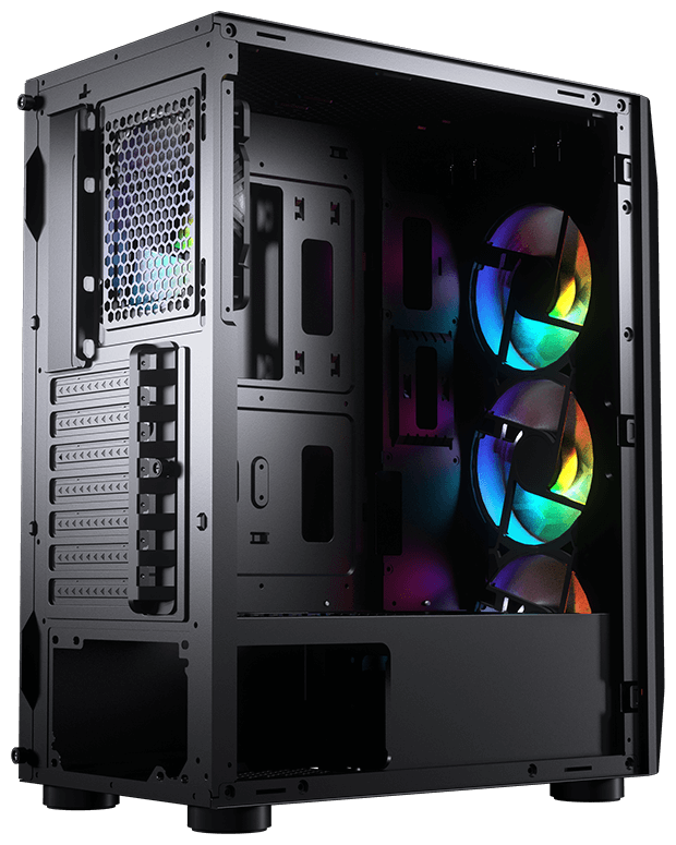 Корпус Cougar MX410 Mesh-G RGB, 4x 120mm ARGB fan + HUB, без БП, боковое окно, чёрный, ATX
