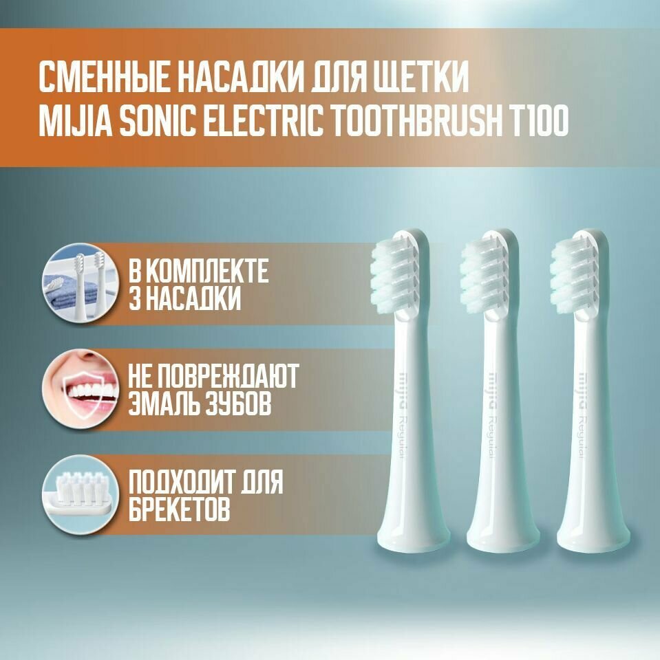 Набор сменных насадок для электрической зубной щётки Xiaomi Mijia Sound Wave Electric Toothbrush T100 3 шт MBS302