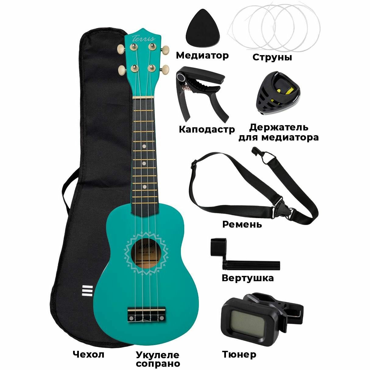 TERRIS JUS-10 TIF укулеле сопрано, деревянная, цвет тиффани