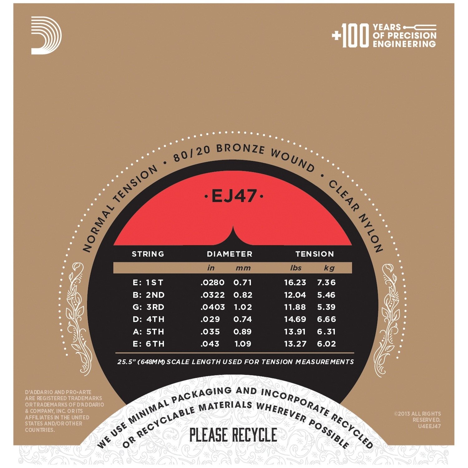 D'Addario EJ47 струны для классической гитары, бронза/нейлон, нормальное натяжение