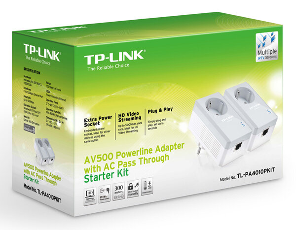 TP-LINK Адаптер TP-Link TL-PA4010PKIT Базовый комплект адаптеров Powerline стандарта AV500/AV600 со встроенной розеткой powerline адаптер в Курчатов