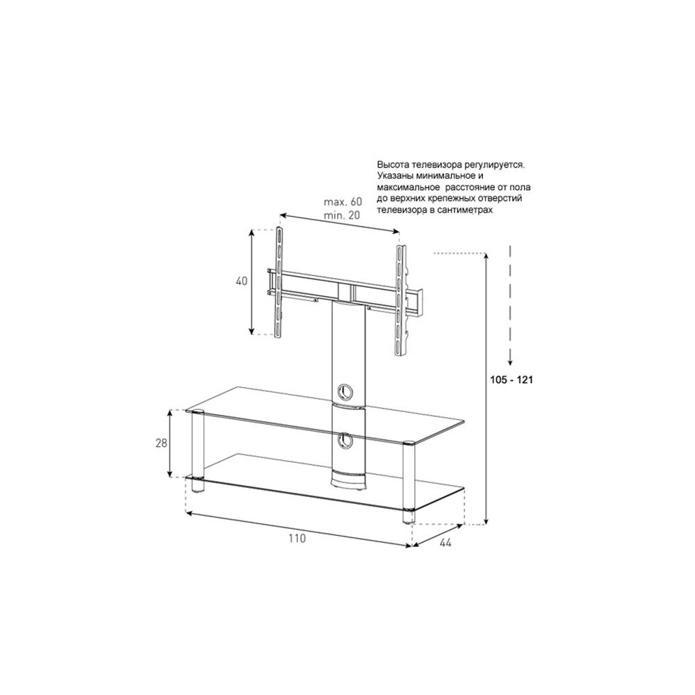Цена для г. Курчатов. Основные характеристики Тип: стойка Назначение: телевизор Минимальная диагональ телевизора: 37" Максимальная диагональ телевизора: 55" VESA: 200x200, 300x300, 400x400, 600x400 Общее количество полок: 2 Регулировка стойки Регулировка высоты: 105-121 см Нагрузка Максимальная нагрузка на кронштейн: 40 кг Нагрузка на верхнюю полку: 30 кг Нагрузка на нижнюю полку: 30 кг Особенности Кабель-канал: да Корпус Цвет корпуса: серебристый Цвет полок: прозрачный Цвет стойки: серебристый Цвет ножек: серебристый Материал. Магазины в городе Курчатов смотрите ниже