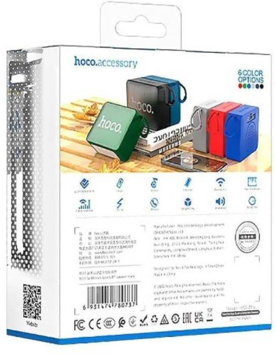 Колонка портативная HOCO, BS51 Gold brick, поддержка BT 5.2, TWS, FM, TF, USB цвет: чёрный (6931474780737)