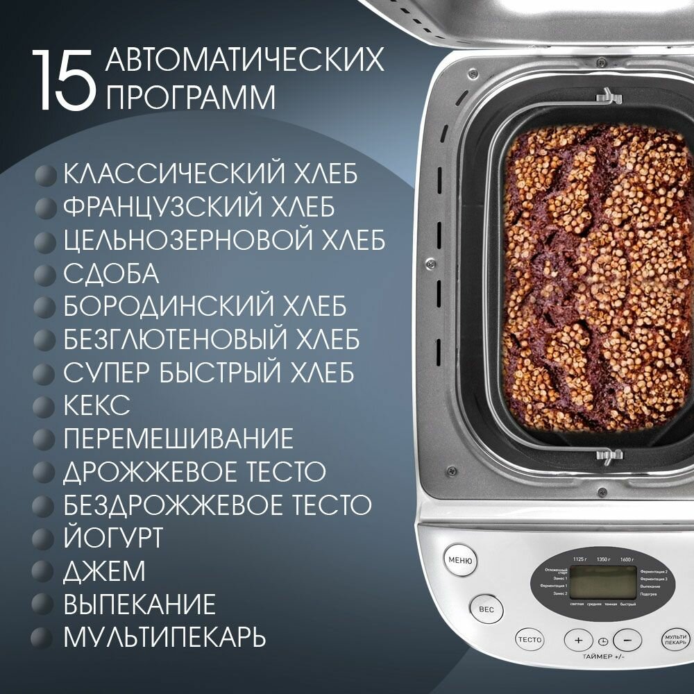 Хлебопечка с замесом теста Endever MB-66 / 15 автоматических программ + мультипекарь / выпечка 1000/1250/1500 грамм