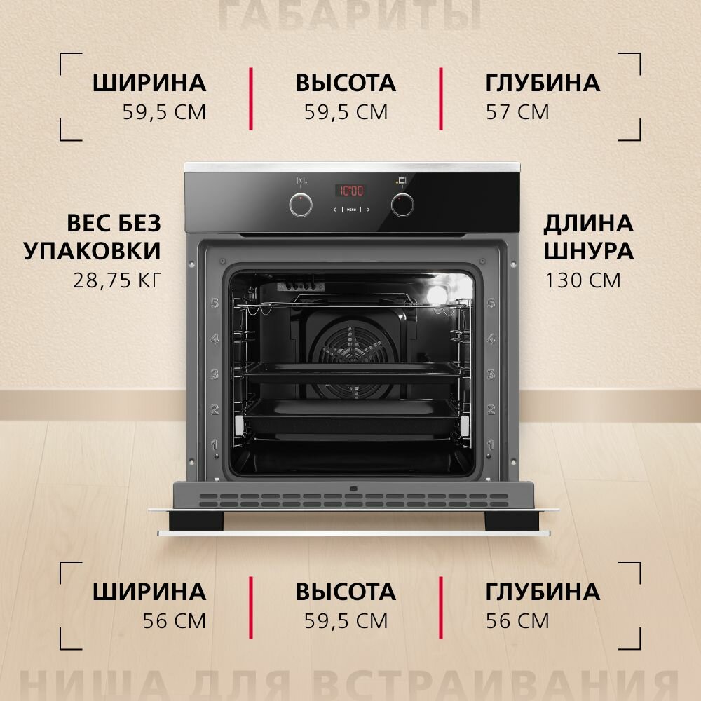 Электрический духовой шкаф Hansa BOEI68403, встраиваемый,65 л, 8 режимов, с дисплеем, таймером, конвекцией, грилем